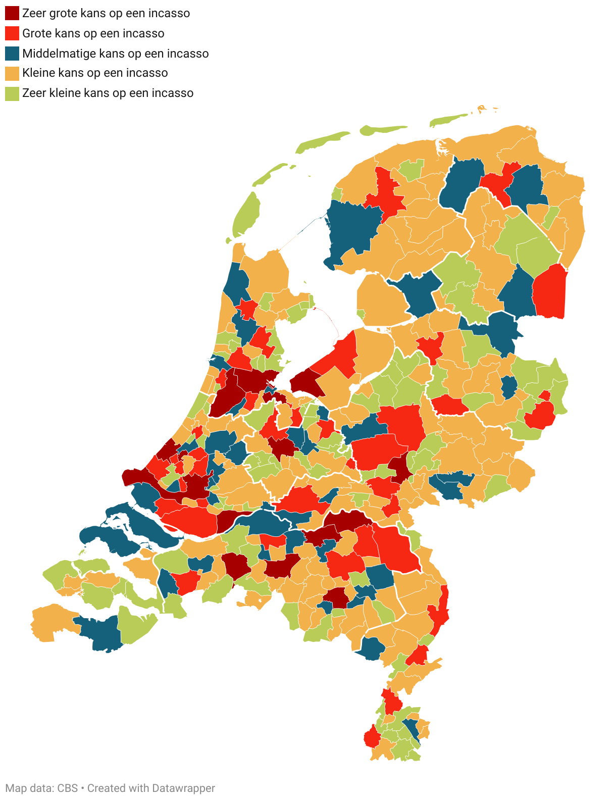 Als ondernemer of financieel professional is het cruciaal om inzicht te hebben in de financiële gezondheid van uw klanten. Als klanten hun facturen niet op tijd betalen, kan dat immers een grote impact hebben op uw cashflow en bedrijfsvoering. Om u een duidelijk overzicht te geven van waar de grootste risico’s liggen, hebben wij een kaart samengesteld die per gemeente de kans op incasso weergeeft.