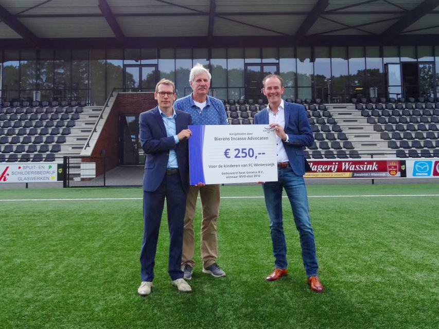Het gedoneerde bedrag zal besteed worden aan de kinderen van FC Winterswijk. Helaas leven er nog veel kinderen in Nederland in armoede. Het is daarom niet voor elk kind vanzelfsprekend om een sport te beoefenen. FC Winterswijk heeft als doel om het voetbal toegankelijker te maken en kan deze donatie daar erg goed voor gebruiken. Voorzitter Gerrit te Kolste heeft daarom Maurice uitgenodigd om samen met Folkert Terpstra en Marieke Schepens van Bierens Incasso Advocaten de prijs persoonlijk te komen overhandigen. Tijdens het bezoek aan de mooie accommodatie van FC Winterswijk legt Gerrit uit dat er binnen de organisatie verschillende initiatieven zijn om het voetballen voor kinderen toegankelijk te houden: “Een voetbalclub moet het onder andere hebben van de contributie. Toch houden wij deze zo laag mogelijk, zeker voor kinderen”. Om het voetballen zo betaalbaar mogelijk te houden voor ouders is bijvoorbeeld elk 3e voetballende kind gratis.